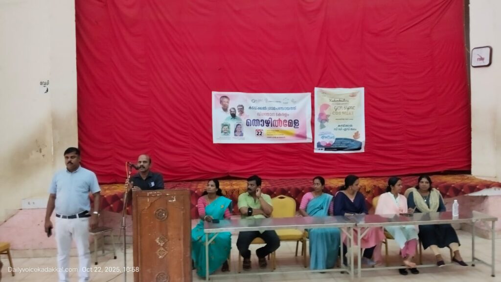 കടയ്ക്കൽ ഗ്രാമ പഞ്ചായത്ത് വിജ്ഞാന കേരളം തൊഴിൽ മേള സംഘടിപ്പിച്ചു.കടയ്ക്കൽ ഗ്രാമ പഞ്ചായത്ത് ടൗൺ ഹാളിൽ സംഘടിപ്പിച്ച തൊഴിൽ മേള ഗ്രാമ പഞ്ചായത്ത് പ്രസിഡന്റ് എം മനോജ് കുമാർ ഉദ്ഘാടനം ചെയ്തു.