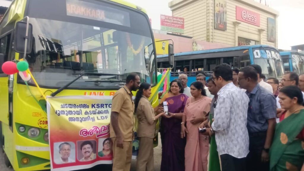ചടയമംഗലം ഡിപ്പോയിൽ നിന്നും പുതുതായി അനുവദിച്ച കടയ്ക്കൽ പാലാ ബസ് സർവ്വീസിന്റെ ഫ്ലാഗ് ഓഫ് (4-11-2025) ചൊവ്വാഴ്ച രാവിലെ 9.45 ന് കടയ്ക്കൽ ബസ്റ്റാന്റിൽ വച്ച് മൃഗസംരക്ഷണ ക്ഷീര വികസന വകുപ്പ് മന്ത്രി ജെ ചിഞ്ചുറാണി നിർവ്വഹിച്ചു.